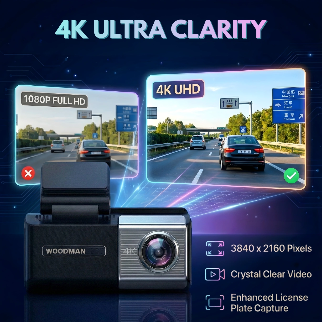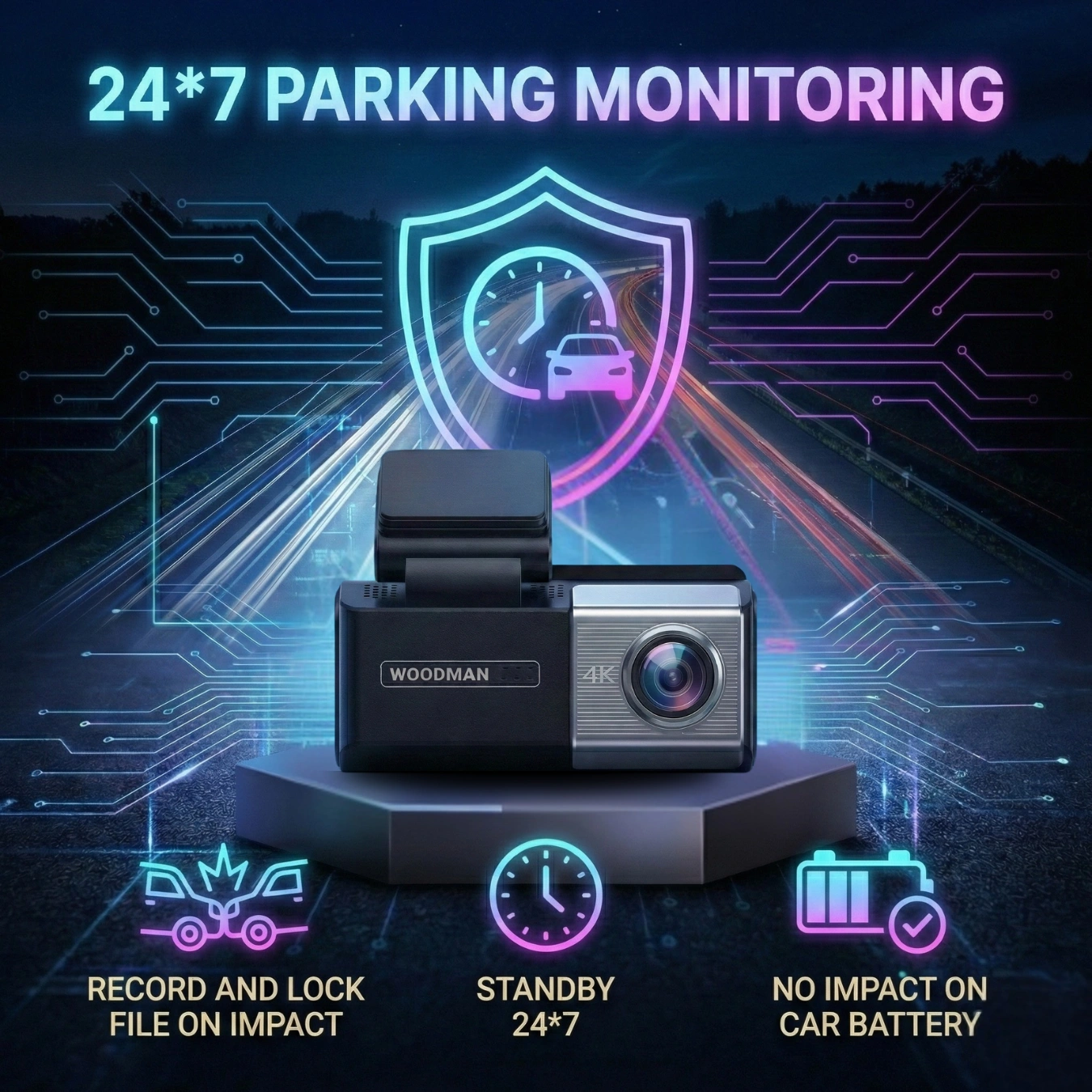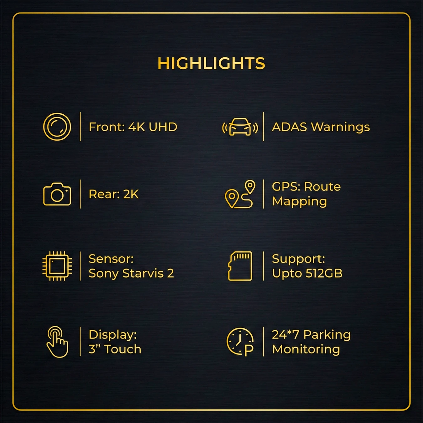 India’s 1st 4K UHD Front + 2K Rear Dash Camera | 3.9″ Touch Screen | Starvis 2 | 24×7 Parking Monitoring